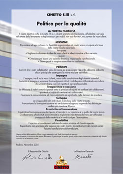Per noi è molto importante diffondere la nostra politica della qualità a tutti, perchè riteniamo sia fondamentale per un rapporto chiaro e proficuo con i nostri clienti.